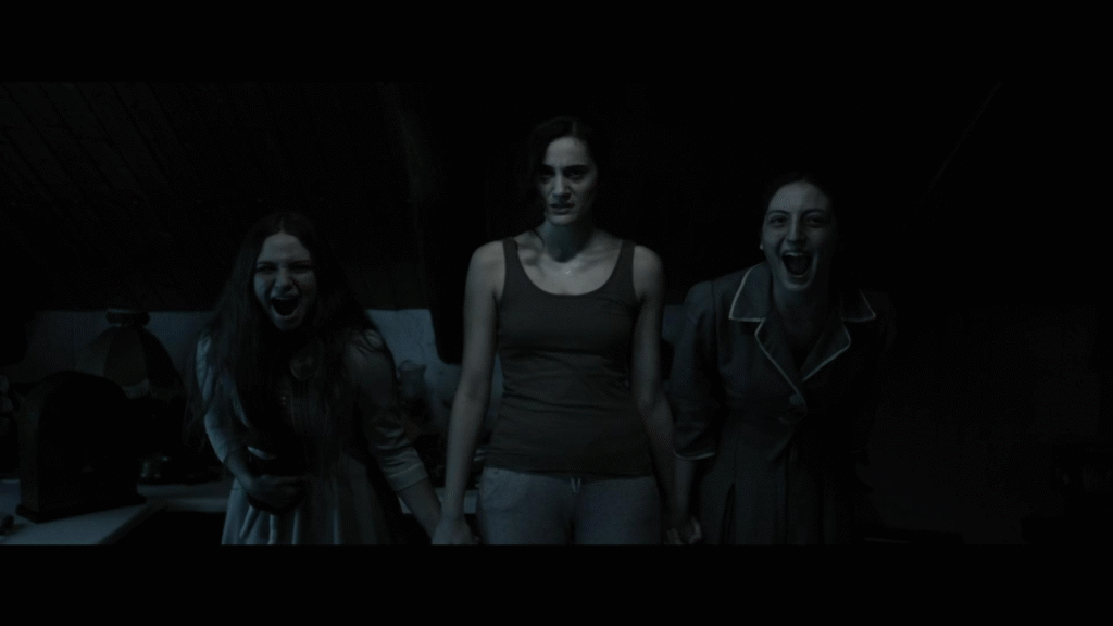 Supporting elements, such as family interactions and subtle environmental cues, amplify the tension. The presence of loved ones raises emotional stakes, reminding viewers that the horror is not just supernatural—it threatens real, human connections.