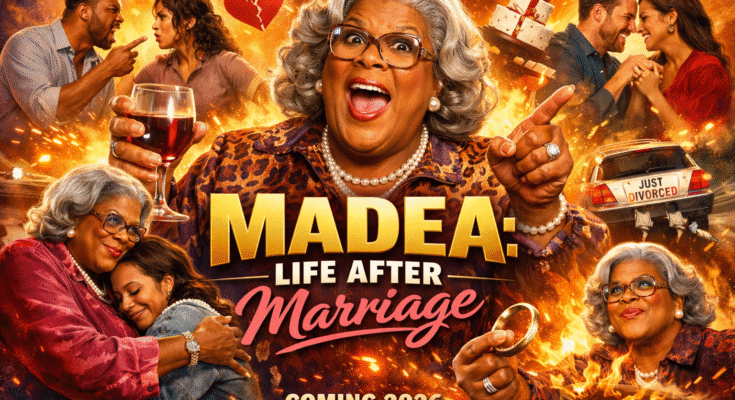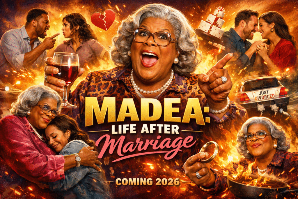 There are weddings that sparkle like fairy tales, and then there are weddings that detonate like fireworks — beautiful, loud, and impossible to ignore. MADEA: LIFE AFTER MARRIAGE (2026) opens with silk gowns shimmering beneath golden chandeliers and champagne flowing freely, only to shatter the illusion of perfection with a single, truth-laced interruption that changes everything.