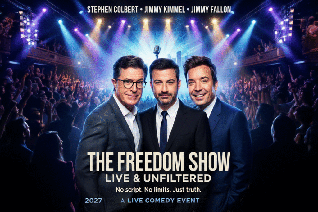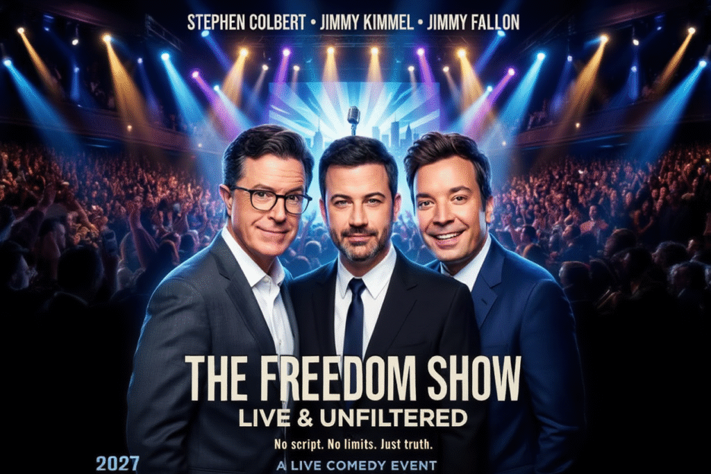 🎬 THE FREEDOM SHOW: LIVE & UNFILTERED (2027)⭐ Starring: Stephen Colbert • Jimmy Kimmel • Jimmy Fallon🎭 Genre: Comedy • Talk Show • Entertainment