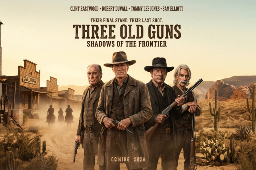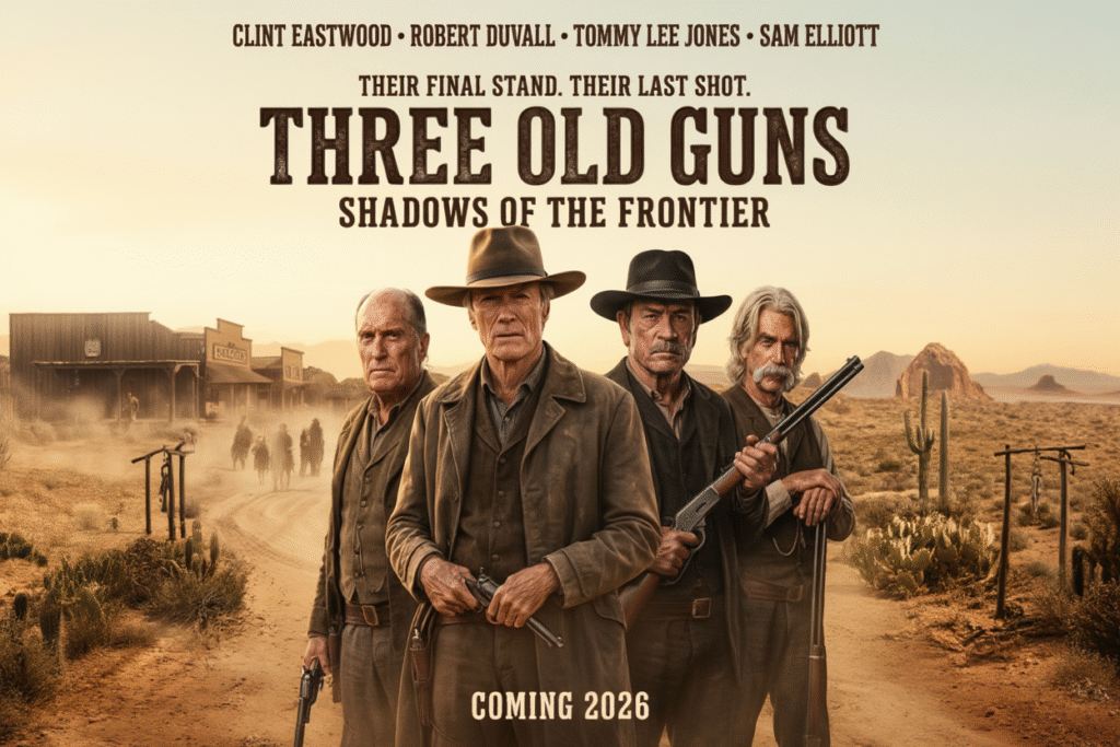 The cinematic landscape of 2026 has been graced by a monumental achievement that feels less like a movie and more like a historical event. Three Old Guns: Shadows of the Frontier arrives as a staggering tribute to the genre that built Hollywood, reuniting a quartet of titans—Clint Eastwood, Robert Duvall, Tommy Lee Jones, and Sam Elliott—for one last, thunderous stand. It is a film where the dust of a forgotten land rises once more, carrying with it the echoes of men who were never meant to ride again, yet find themselves summoned by the inescapable gravity of justice.