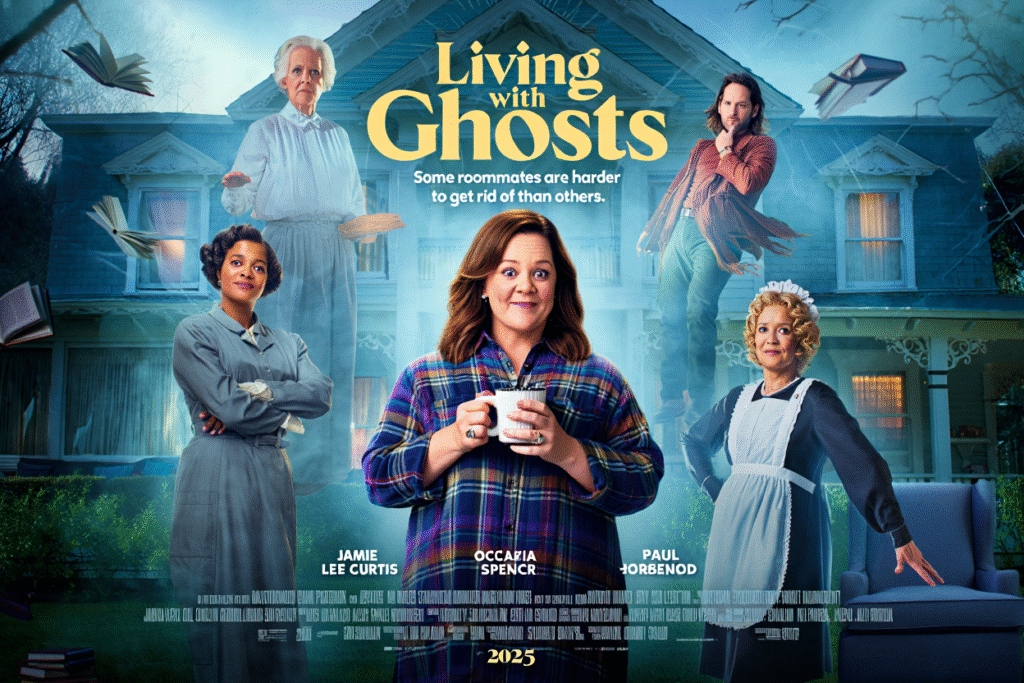 This Halloween, Living with Ghosts invites you into a haunted house where the only thing scarier than the spooky spirits is the hilarious chaos they bring. In this charming blend of comedy and supernatural antics, Melissa McCarthy stars as Kate, a single mom looking for a fresh start. She and her daughter move into a quirky, old house, hoping for peace and stability—but they quickly discover they’re not alone. The house is already occupied by a group of eccentric ghosts who aren’t exactly thrilled about sharing their home with the living.