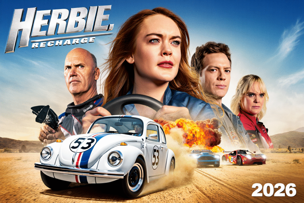 Herbie is back — but this time, the stakes are higher than ever. In Herbie: Recharge (2026), the beloved Volkswagen Beetle returns to the race track, not just to win, but to remind the world that the spirit of racing isn’t something you can program. In a future dominated by silent, autonomous electric supercars, Maggie Peyton (Lindsay Lohan) is on a mission to preserve the human side of NASCAR, but she quickly realizes that her best racing partner — Herbie — is being overshadowed by the sleek, hybrid-powered machines taking over the sport.
