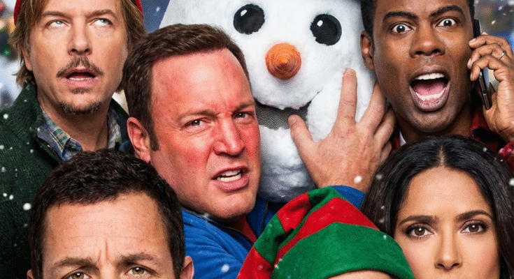 Eric (Kevin James) stands by Lenny’s side, holding an oversized snowman decoration like it’s his most prized possession. His face is a perfect mix of joy, exhaustion, and the kind of enthusiasm that only Eric can muster. Meanwhile, Chris Rock is doing his best to keep up with the latest holiday TikTok trends, though, as always, he finds himself hilariously out of sync with the younger crowd. His hands flail in frustration as he tries and fails to land a viral video, while David Spade, arms crossed with a signature exasperated grin, is trying his hardest to be the voice of reason—though it’s clear that in this group, reason has no place.