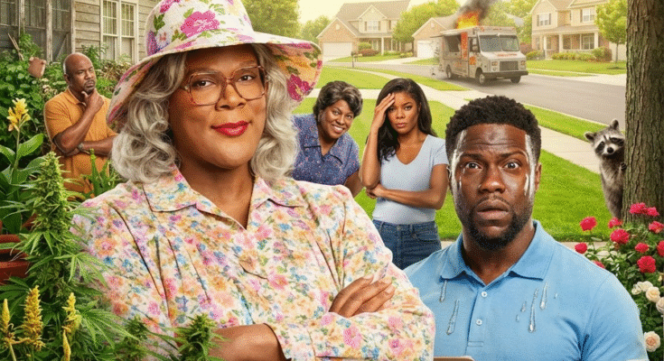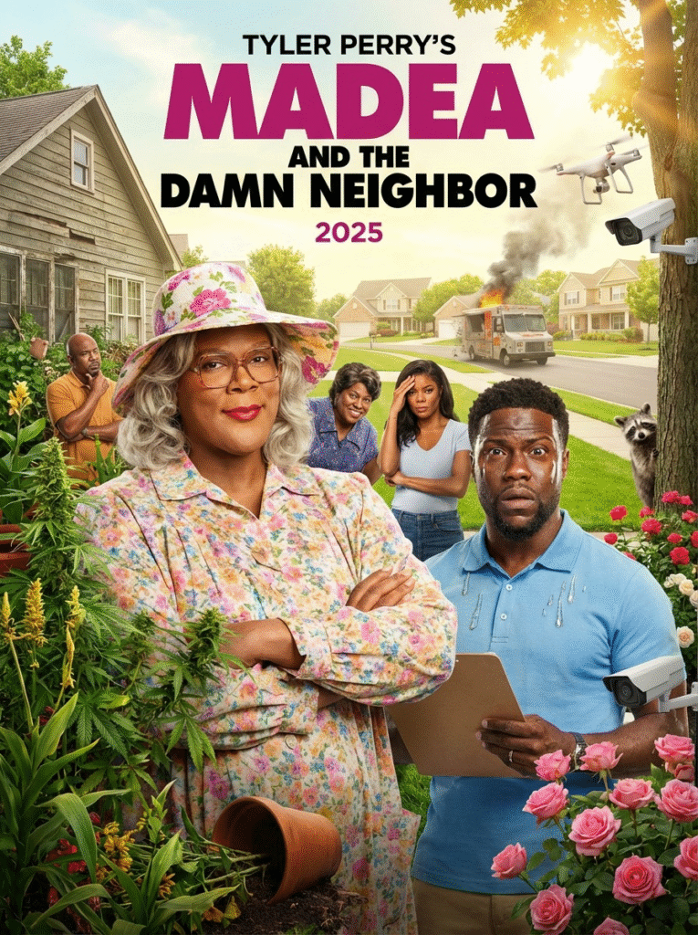 In Madea and the Damn Neighbor (2025), chaos meets suburbia in the most hilarious and unpredictable way possible. In a pristine, picture-perfect suburban neighborhood where everything is in its place, Madea (Tyler Perry) is the last thing anyone expects to show up. Calvin (Kevin Hart), the proud owner of a perfectly manicured lawn and a home filled with cutting-edge technology, has built a life of order and control. Drones patrol his yard, robotic lawnmowers keep his grass impeccable, and every aspect of his world is meticulously planned. But when Madea moves in next door with her chaotic garden, complete with runaway food trucks and feral raccoons, Calvin’s world is turned upside down.