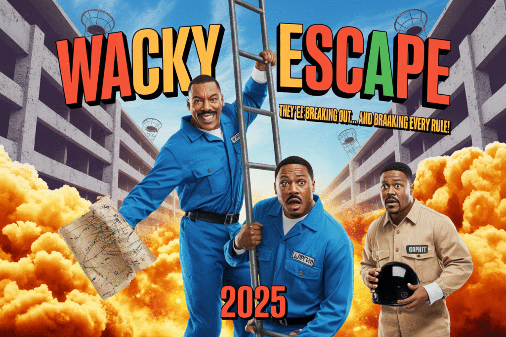 In Wacky Escape (2025), the ultimate comedy trio of Eddie Murphy, Martin Lawrence, and Kevin Hart take on the most bizarre and hilarious prison break ever put to film. Ray (Eddie Murphy), Marcus (Martin Lawrence), and Shorty (Kevin Hart) couldn’t be more different, but fate has thrown them together in the world’s most absurd prison. Wrongfully convicted and sentenced to life under the rule of a wacky, tyrannical warden, the trio must rely on each other to hatch the most ridiculous, chaotic, and outright funny escape plan ever conceived.