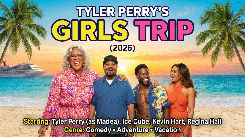 Get ready for the ultimate vacation comedy in Tyler Perry’s Girls Trip (2026), where chaos meets tropical paradise in the most hilarious way possible! Starring Tyler Perry as Madea, alongside Ice Cube, Kevin Hart, and Regina Hall, this uproarious comedy is packed with laughs, heart, and mayhem. With a stellar cast and an unforgettable premise, this vacation is anything but relaxing, and you won’t be able to stop laughing from start to finish.
