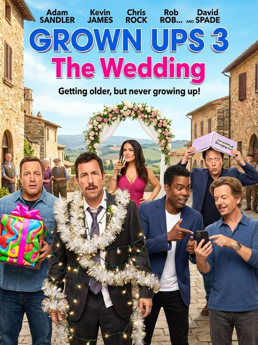 “They may be getting older… but the chaos is just getting started!” Grown Ups 3: The Wedding is a wedding comedy for the ages—full of laughs, love, and, of course, total disaster.
