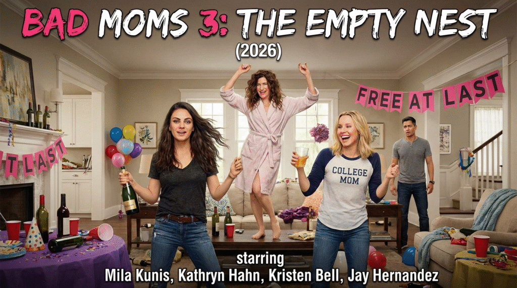 The moms are back and ready to prove that just because the nest is empty doesnât mean the fun is over in Bad Moms 3: The Empty Nest (2026)! Amy (Mila Kunis), Kiki (Kristen Bell), and Carla (Kathryn Hahn) are navigating the unexpected freedom of having grown-up kids, but the chaos and hilarity that comes with motherhood never really leaves. Amy, struggling with the idea of âfinding herselfâ after years of putting her kids first, is hilariously torn between trying to embrace self-care with a glass of wine in hand and the yoga mat underfoot. Her journey to rediscover her own identity is filled with awkward moments and relatable struggles that every mom can understand.