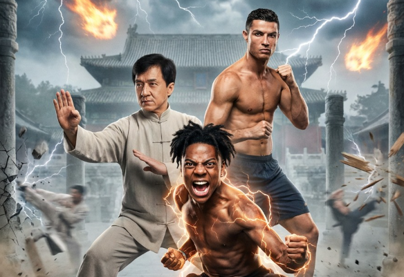 Behind him stands Jackie Chan, the seasoned martial arts master, whose presence is nothing short of legendary. As IShowSpeed’s mentor, Jackie’s calm, grounded stance provides the balance and wisdom that his fiery pupil desperately needs. Jackie’s years of experience in the martial arts world offer not just techniques, but the true essence of discipline and control. The contrast between IShowSpeed’s chaotic energy and Jackie’s poised expertise creates a dynamic that’s as compelling as it is thrilling. Together, they form an unorthodox but powerful team, with Jackie teaching IShowSpeed to harness his power and channel it for victory, while guiding him through the mental and emotional struggles that accompany mastery.