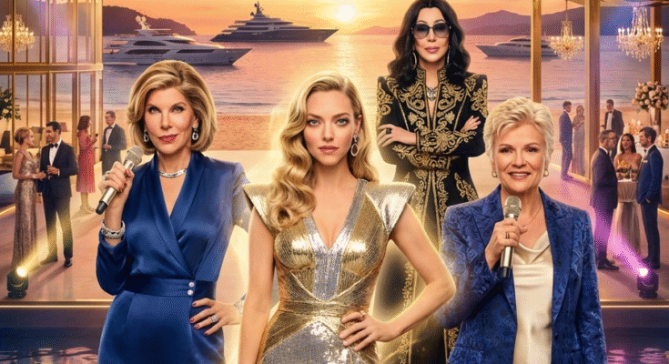 In the background, the formidable Cher steps in as Sophie’s grandmother, casting a powerful aura over the entire scene. Her cool, confident energy is undeniable, offering her wisdom and strength to Sophie as the island’s fate hangs in the balance. Kalokairi has transformed into a glamorous battleground, with sleek yachts, extravagant parties, and crystal chandeliers lighting up the horizon as the stakes rise higher than ever. The rivalry for control of the island has never been more intense, and Sophie must summon every ounce of strength to protect the legacy that her mother, Donna (Meryl Streep), built.