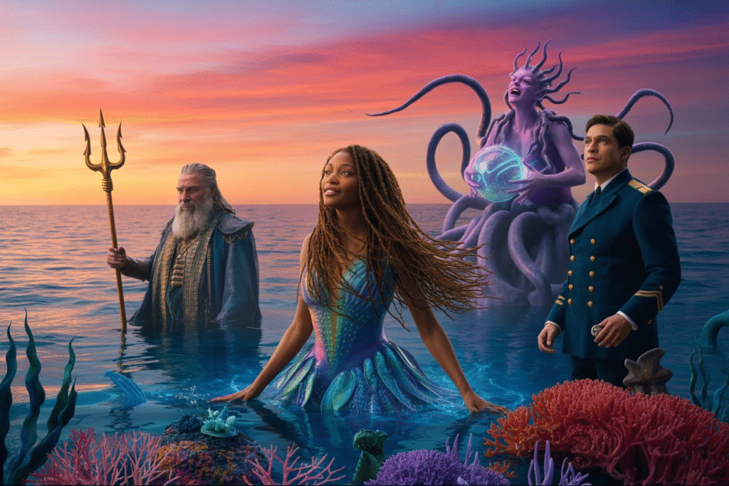 Javier Bardem returns as King Triton, embodying the old guard, the father figure who remains a pillar of wisdom and power in Arielâs world. However, as the tide shifts, even Triton finds himself tested by the new forces at play. Bardem brings gravity to his role, offering counsel to Ariel while also facing his own internal battles about the future of their kingdom. His presence is both formidable and loving, a reminder of the oceanâs ancient power and the complex nature of family ties.